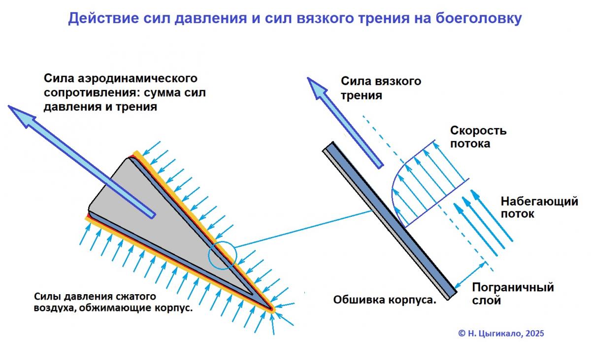 Здесь важно не впасть в другую распространенную ошибку. Раз тепловой вклад трения ничтожен, то и само трение ничтожно? Нет, это не так: силовой вклад трения в сопротивление движению тела вполне сравним с вкладом сжатого газа на поверхностях тела, давящим назад.