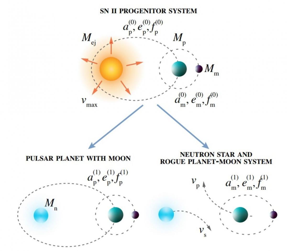 Cхема возникновения планеты-бродяги со спутником после взрыва родительской звезды / © Viktória Fröhlich and Zsolt Regály, 2025